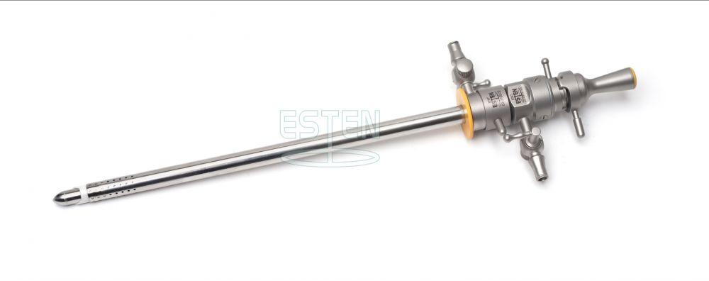 ESTENТубус с двумя вентилями постоянной ирригации с керамической изоляцией для резектоскопии (26/24 Ch, вращающийся, 30 градусов). Предназначен для гистерорезектоскопии и трансуретральной резекции. Быстросъемное соединение внешнего и внутреннего тубуса. Внутренний тубус с керамической изоляцией. Возможность использования с жесткими эндоскопами диаметром 4 мм и углом направления наблюдения 12 и 30 градусов. Обтуратор атравматичный со стойким биоэнертным покрытием в комплекте. Материал нержавеющая сталь, керамика, термостойкий пластик. Стерилизация в жидкости или в автоклаве
